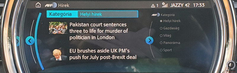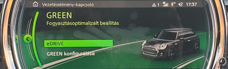 A Miniben van SIM, amin némi adatforgalom is elérhető. Így kap a térkép forgalmi adatokat, így jöhetnek le OTA frissítések, de elérhető az időjárás előrejelzés és egy hírösszefoglaló is akad, ami nemzetközi források friss cikkeinek a kivonatát jeleníti meg. A beállítások a “Saját MINI” nevet viselő menüpontban ülnek, nyitás-zárás, világítás, különböző segédek (ráfutás, parkolás) paraméterezése mellett itt állíthatjuk a HUD pozícióját, nézhetünk fogyasztási adatokat, a nagy, világító karima funkciója is itt kapcsolható, ezen egyszer nyilván minden tulaj végigmászik majd, hogy minden az ízlésének megfelelő legyen.
