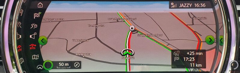 Egy jó gyári navi persze megoldhatná félig-meddig a dolgot, de a Tomtom alapú navigáció minden, csak nem jó. Budapesten belül hiába ismeri a forgalmi adatokat, olyan hajmeresztő útvonalakat rak össze, hogy csak a tapasztalataimra hagyatkozva egy 20 perces úton 6 percet vertem rá kéregből a saját útvonalamat tartva. Ebben persze az is benne volt, hogy elképesztő hiányosságokkal bír a térkép, csak egyetlen példa: a Körszálló felől haladva a Pasaréti úton a navigáció be akart vinni a Vasas pálya parkolójába, majd onnan ki, miközben a főút simán elmegy mellette és nyilván azon kell haladni. Arról nem is beszélve, hogy a POI adatbázis is foghíjas, a Puskás Tivadar Távközlési Technikum egy nem létező objektum szerinte, pedig hát én oda járok focizni 20 éve és minden más navigáció ismeri.