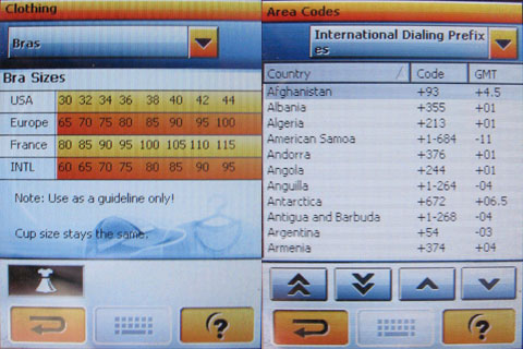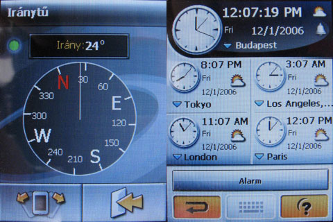 Az „utazó szett” névre keresztelt menüpontban kapott helyet az iránytű, és a világóra. Az iránytűt az első használat előtt hitelesíteni kell, amihez egy szép kép nyújt segítséget a kijelzőn, ami alapján sosem jutottam semmire. Fogtam, és forgattam, pörgettem kicsit a készüléket, majd kiírta, hogy a hitelesítés sikeres, és nekem úgy tűnt, hogy a megfelelő irányba mutatott (legalábbis észak nagyjából észak volt). A világóráról pedig úgy érzem nem kell beszélnünk. Szintén ebben a menüpontban található meg a mértékegység-átváltó, amely ruha és cipőméreteket is konvertál, illetve hasznos lehet az országokhoz tartozó nemzetközi előhívók listája is.