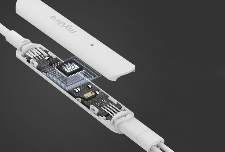 A Type-C csatlakozójú fülhallgatók jellemző előnye a jack csatlakozóval szemben, hogy nem analóg módon, hanem digitálisan kapják a jelet. A valóságban ez nagyjából annyit takar, hogy ha a fülhallgatót bármilyen kompatibilis eszközbe bedugjuk, árkategóriától és márkától függetlenül ugyanazt a hangminőséget és hangszínt kapjuk, amit a Moshinál megálmodtak, hiszen a digitális-analóg átalakítás és az erősítés a fülhallgatóban, egész pontosan a középső vezérlőegységben van. Persze, egy LG Quad DAC-os mobil valószínűleg komolyabb részletességet és erősítést tud átadni analóg módon a jack csatlakozóján, mint amit a füles magának csinál, de ez manapság inkább extrém kivétel, egy telefon esetén leginkább annak örülünk, ha maradt még egyáltalán jack egy telefonon. Úgyhogy a Moshi ezt a részt megoldotta a Type-C csatlakozóval, persze így hagyományos erősítőbe vagy egyéb, jack-csatlakozós eszközbe nem dugjuk be a kütyüt.