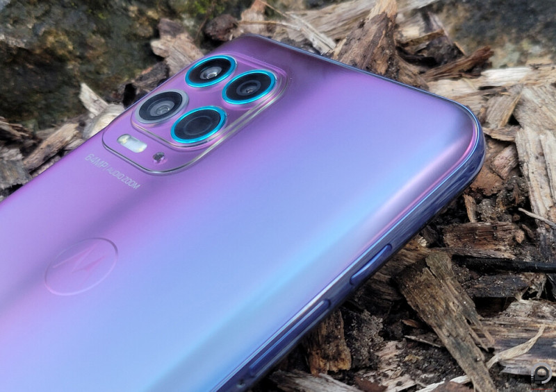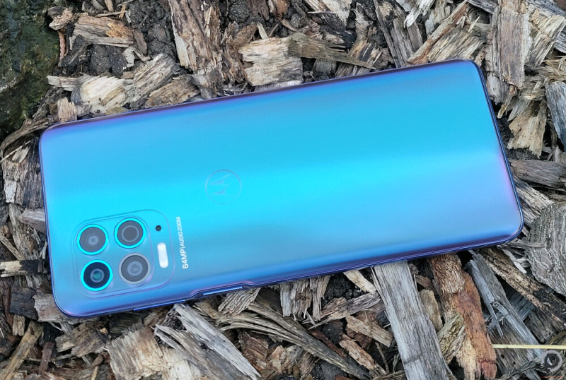 A hátlap nagyon letisztult, a CE jelzést és kötelező technikai információkat az alsó élre suvasztották a Type-C port, a monó multimédiás hangszóró és a jack csatalakozó mellé, így nem rontanak az esztétikán. A kellemesen lapos négyzetes kamerapanelen négy szenzor található, három türkiz díszszegéllyel, a szuperközeliket is biztosító ultraszéles szenzort viszont egy dedikált makró segédfényként funkcionáló LED gyűrű veszi körül. A Motorola logó viszont ezúttal csak igen visszafogott formában jelenik meg a hátlapon.
