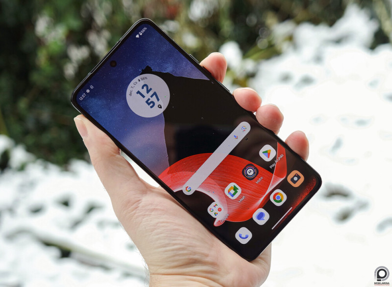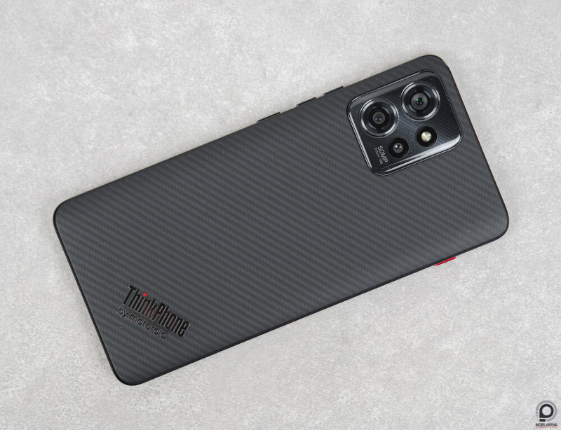 A legfőbb ThinkPad jegy a kellemesen lekanyarodó és kifejezetten jól tapadó, szintetikus aramidrostból készült, szénszálas mintázatú hátlap, amivel nem csak stabil, hanem kényelmes is a fogás. Mondjuk ez pont igaz minden műbőr mintázatú Motóra, és ezért is kedveljük a márkát, az 50 + 50 + 2 megapixeles kamerarendszer ívelt védőüvege pedig konkrétan megidéz korábbi gyártói modelleket. A legfőbb dizájnkérdésem mégis teljesen más fókuszú: ha a Razr 40 Ultra a régi kagylótelefonok előtt hajt főt modern kivitelben, nem lett volna logikusabb, ha a ThinkPhone a szétnyitható laptopok előtt tablet/telefon formával tiszteleg? Kihagyott ziccer, 158,76 x 74,38 x 8,26 milliméteren és 189 grammon a készülék viszont remekül illik lapáttenyerembe, és egy kézzel, némi gépészkedéssel pont elérem a képernyő felső sarkait, ami nem mondható el egy Galaxy S23 Ultráról.