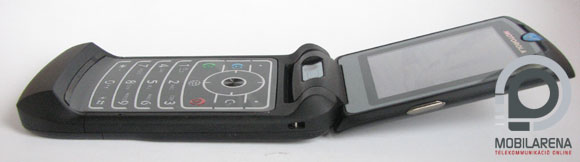 A kinyitás során a zsanérral együtt előregördül az eddig hátul kuksoló belső kamera, és feltárul a jellegzetes Motorola gombsor. A billentyűk elrendezése csupán annyit változott, hogy a navigációs gyűrű alól a C gomb átköltözött a jobb oldara, helyét pedig egy földgömb vette át, amely értelemszerűen a böngészőt nyitja meg. A kijelző maradt ugyanaz (méretre és tulajdonságait tekintve legalábbis biztos), a gombsor világítása viszont visszafogottabbá vált, ami szerintem nem hátrány.