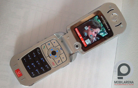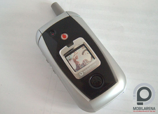 A fedlapon a fekete betét határozza meg a hangulat, illetve ennek közepén a színes, 96x80 pixeles külső kijelző. Itt ugyebár láthatóak a legfontosabb információk, illetve a beállított háttérkép kicsiben. A kijelző körüli ezüstös keretben található meg a vaku, kicsit fentebb egy Vodafone logo, efelett pedig a kamera optikája szerénykedik. A telefon oldala bármelyik Motorola oldala lehetne. Bal felől a gyártó neve, a hangerőgombok és a diktafon billentyűje található, jobb oldalt pedig a fényképezőgép gyorsgombja kapott helyet. Alul a szabványos Motorola csatlakozó helyezkedik el, és ezzel körbe is jártuk a készüléket, az infrát tehát ezúttal is kihagyták a tervezők.