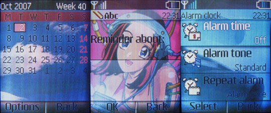 Van egy alapfunkciós, csak havi nézetet tudó naptáracska is, ahová egyféle emlékeztető rögzíthető, de tartozhat hozzá riasztás is. Ez is több mint egy seggberúgás, becsüljük meg. A kapcsolódó fícsör neve panchangam, amiről gőzöm nincs, hogy micsoda, de rágugliztam és kiderült, hogy valami indiai ezoterikus izébizé, tőlem az ilyesmi igen távol áll, úgyhogy nem feszegetném a témát. Minden naphoz kiír valamit, mondjuk 2007. október 5-én a Chandramana Bhadrapada értéke Krishna 08, úgyhogy csak óvatosan.
