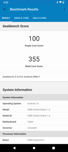 | Benchmark | Nokia 1.4 | LG K22 | Doogee N30 | Huawei Y5p | Motorola Moto E6 Play | Cubot Note 7 |