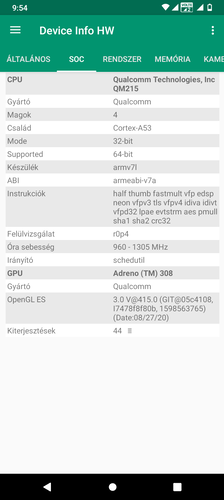 | Rendszerchip | Snapdragon 215 | Snapdragon 215 | MediaTek Helio A25 | MediaTek Helio P22 | MediaTek MT6739 | MediaTek MT6737 |