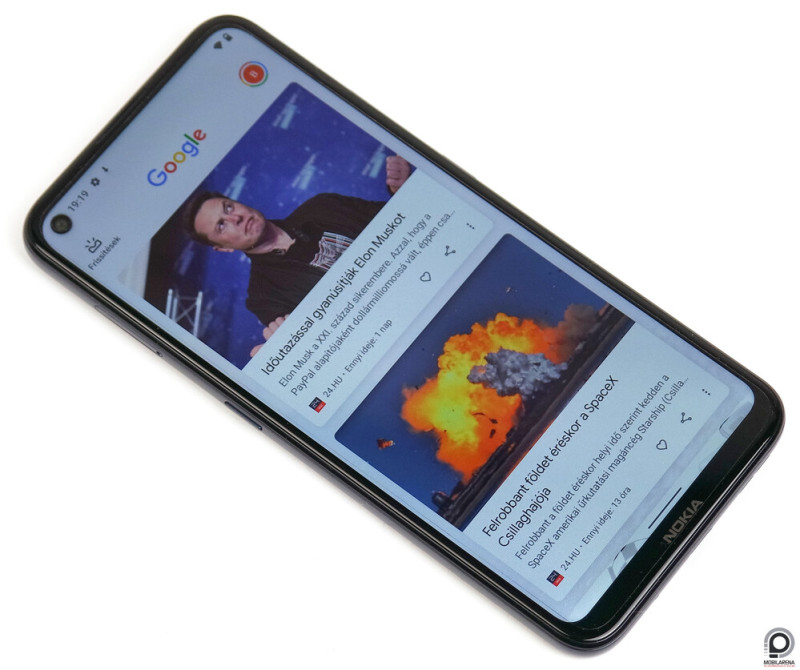 Oké: hol van már az első Nokia 5 egykezes mérete: 161 x 76 x 8,7 milliméteren az 5.4-et kényelmesebb kettő manccsal kezelni, viszont a 181 grammon úgy nem lett vaskos, hogy 4000 mAh-nyi azért telep belefért a műanyag házba. Azt pedig stabilan raktak össze: nem recseg-ropog, ha szorongatom, jók az illesztések, nem lóg ki a lóláb. Épp csak az lehet zavaró, hogy a vékony hátlapot a telep felé egy egész picit be lehet nyomni, ha ettől még a konstrukciónak nem is származik problémája. Ami nem változott, és 75 ezer forinton már a problémaoldalt gyarapítja, az a HD felbontás, a 720 x 1560 pixel 6,39” képtálóra kiterítve ugyanis korántsem hoz elég éles rajzolatot.