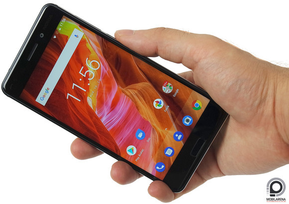 Szerencsére a FirstPhone-tól idevándorolt készülékkel az ismerkedés pozitívan indult: bár a képernyőkávák jókorák, a Nokia 6-ot nem csak kényelmes fogni, hátulról jó ránézni. Az 5,5 hüvelykes, 1080 x 1920 pixeles IPS panel is meggyőzött bennünket: a napfény alatt elég világos, éjjel pedig kellően sötét maradt. Valamiféle utcai kontrasztmód akad, bár ez a sárga égitest alatt sem növelte a fénysűrűséget, de igazából nem is kellett. A kalibráció kissé kékes lett, de nem vészesen, a telítettséggel nincs gond, inkább a kontraszt- és fényerő csökkenés róható fel a panelnek, ha oldalról téved rá a tekintet. Az érintési érzékenység a képernyő és a három alsó kapacitív gomb esetében is megfelelő (a vissza és az alkalmazásváltó háttérvilágítást, a home ujjlenyomat-olvasót kapott), a rezgőmotor pedig kellően erélyes.