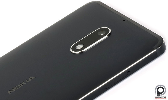 Ennyi kényelmetlenség belefér, különben is: mint phablet, eleve két kézzel érdemes használni, egykezes szoftvermód úgysincs. Mint óriástelefon viszont, a 3000 mAh-s telep nem hangzik túl meggyőzően. A Nokia 6 baloldalt fogadja be a két nanoSIM-et vagy az egy nanoSIM-et és egy microSD kártyát, a fiókjuk a mellékelt tűvel piszkálható ki. Jobb oldalra került a nagyon lapos profilú, így nehezen kitapintható és lenyomható bekapcsoló és hangerőszabályzó. Ráadásul, mint valami rossz öltözködési trend követője, tesztalanyunk is sáros a hangerő billentyűk túl magasra helyezésében. Felül a 3,5 milliméteres fülhallgató-kimenetnek egy antennakilépő csík társa, alul a mikrofon, az microUSB port és a multimédiás hangszóró pillantható meg. A hátlapon is akad egy mikrofon, plusz alul-felül egy-egy keskeny, műanyag antennakilépő sáv, az esztétikából egyik se von le. Közöttük a függőleges Nokia logó és minősítési felirathalmaz csak bizonyos fénytörésre csillan meg.