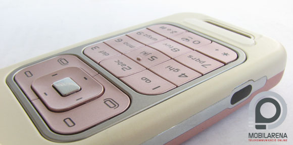 A kinyitott telefon gombsora olyan, amilyen. Legalábbis formára, mert használati szempontból kifogástalan. Logikus elrendezés, jó nyomáspont, megfelelő méretek, könnyű kezelhetőség. A kijelző felett van a belső kamera és a fényérzékelő. A hátlapon igen szerény külsővel megáldott 3 megapixeles optika pihen, illetve ide került egy dögnagy, a síkból kissé kiemelkedő betét, amely a szériára jellemző mintázattal rendelkezik.