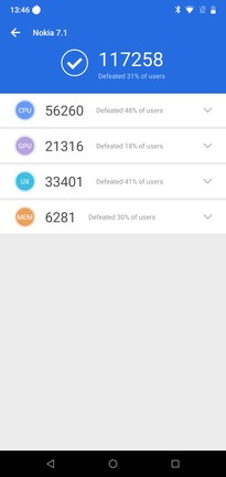 | Benchmark | Nokia 7.1 | Nokia 7 Plus | Honor Play | Pocophone F1 | Huawei Mate 20 Lite |