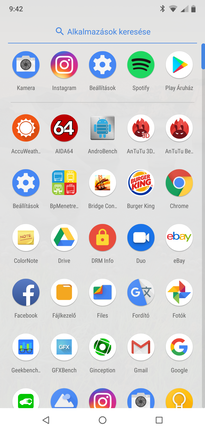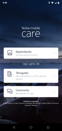 Nehéz megérteni, hogy mi foglal közel 9 GB-ot, hiszen a teljesen nyers, 8.1-es (a tesztidőszak után szinte azonnal Pie-ra frissült) Android One-on alapuló rendszer extralistája lényegében kimerül a teljes Google-csomagban (fájlkezelőstül, jegyzetszoftverestül) és a Támogatás néven elérhető Nokia Mobile Care-ben, ami többek közt élő chat szolgáltatással segíti a felhasználót, ha elakadna – ugyanitt elérhető a mobil használati utasítása és ellenőrizhető a garancia állapota is. Tesztünk pillanatában októberi, tehát majdnem, de nem a legfrissebb biztonsági szinten állt a mobil.