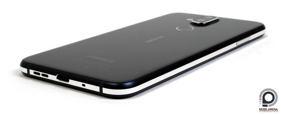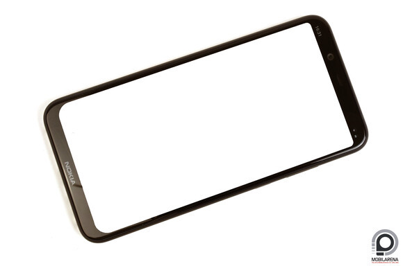 A kijelző körül és alatt maradt némi holttér, a helykihasználás viszont előnyös. A Nokia márkajelzés alulra került, fent pedig 20 megapixeles előlapi kamerának, beszédhangszórónak, illetve fény- és közelségérzékelő szenzoroknak ad helyet a rejtett szenzorsziget. Ami alapvetően nem egy apró fajta, de ez ugye nem nagyon látszik. A keret fém és annak is látszik, az ezüst díszcsík viszont csak a közepén fut végig, az előlaphoz és a szintén üveg hátlaphoz a készülék színével megegyező sávot köz beiktatva kapcsolódik. Antennakilépesek csak az alsó és a felső élen vannak, igen diszkrét kivitelben.