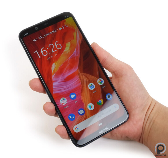 A Nokia 8.1 optikailag nem érződik túl magas vagy hosszúkás készüléknek, pedig számszerűleg 154,8 x 75,76 x 7,97 milliméter, ami egyáltalán nem kompakt és főleg nem keskeny. A 18,7:9 arányú, 6,18 hüvelykes, egyébként Full HD+ felbontású IPS panel viszont teljes egészében sosem látszik, mivel a szenzorsziget maszkolása nem tüntethető el. Érdekes megoldás, hogy ugyan van szenzorsziget, az lényegében nem látszik és esélyünk sincs olyan beállítást találni, amivel láthatóvá tehetnénk, mert nincs. Így olyan hatást kelt, mintha a felső káván kétoldalt lenne megjelenítve az állapotsáv, ami amúgy jól néz ki, csak a panel alsó és felső sarkainak íve nem szimmetrikus. Ettől optikailag olyan, mintha a készülék lefelé keskenyedne. Ez engem például jobban zavar, mint amennyire egy noccs zavarna.