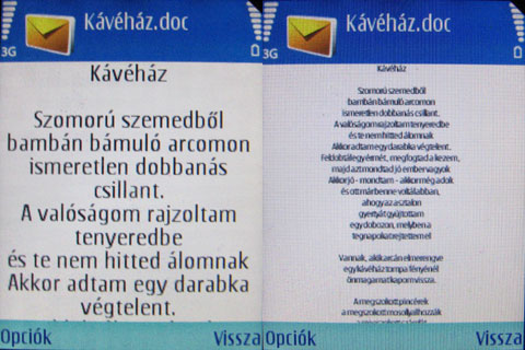 Az iroda menüpontban van a QuickOffice, amely Excel, Word és PowerPoint doksik megjelenítésére alkalmas, szerkeszteni nem lehet ezeket. Nincs gond a PDF fájlokkal sem, ezeket az Adobe szoftvere könnyedén lekezeli. A számológép alapfunkciós, a mértékegység-átváltó is a szokásos. Van viszont kétféle felolvasónk is. Az első a készülék legfontosabb funkcióihoz ad hangos menürendszert (utolsó hívások, névjegyzék, hangposta, tárcsázó, óra), magyarul beszél, de nagyon hülye kiejtéssel. A pluszjel így hangzik: "pjuszjej". A második az SMS felolvasó, amely Martin, esetleg Ellen hangján szólal meg, egyelőre kizárólag angolul, később lehet majd frissíteni lokális hangokkal a szoftvert.