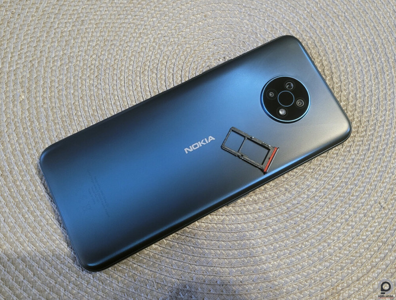 Érdemes szem előtt tartani, hogy a Nokia G50 hatalmas. Még a Galaxy Note 20 Ultránál is lényegesen nagyobb és nehezebb, noha a kijelző valamivel kisebb. A 220 grammos G50 173,8 x 77,7 x 8,9 milliméter és meglehetősen fejnehéz, én például nem tudom egy kézzel úgy megtartani, hogy bármit is tudjak csinálni a 6,82 hüvelykes, 20:9 képarányú kijelzőn, mert kibillen a kezemből. Ezzel együtt a bekapcsológombba épített ujjlenyomat-olvasó pont jó helyen van, két kézzel pedig stabilan kezelhető az eszköz. A nagy méret és plasztik készülékházhoz képest főleg szignifikáns tömeg okozta kényelmetlenséget az 5000 mAh kapacitású, 18 wattos teljesítménnyel tölthető akku kompenzálja kicsit.