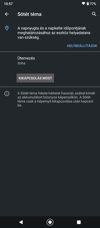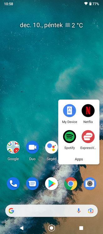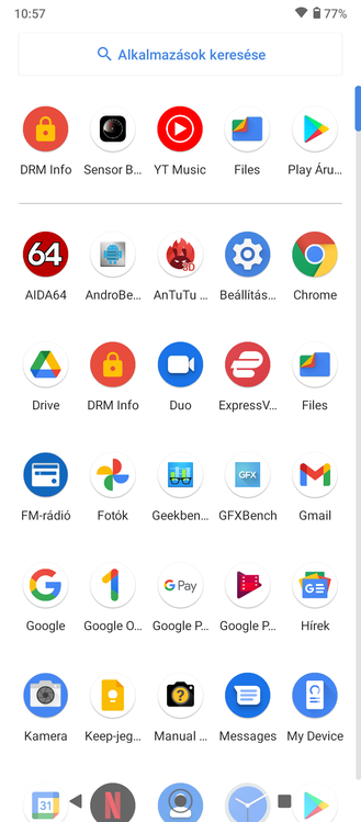 Van rendszerszintű sötét téma, szemkínélő mód és Digitális jóllét szülői felügyelettel, a rendszernavigáció esetében pedig választhatunk a gesztusvezérlés és a virtuális gombok között, utóbbi esetben viszont nem módosíthatjuk a sorrendet, ami mindig rendkívül kényelmetlen, főleg, ha egy ekkora készülékről beszélünk. Azt sem feltétlenül értem, az NFC-nek miért nincs gyorskapcsolója a panelen, de láttam már ilyet máshol is. Egyébként mindenhol a megszokott gyári felületekkel találkozunk, az alkalmazáskínálatot a Google biztosítja, amit az Express VPN harminc napos próbaverziója, a Netflix és a Spotify egészít ki. Ha bármi egyébre szükségünk van, Google Play Áruház.