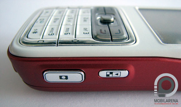 A törtfehér előlap legmeghatározóbb eleme minden bizonnyal a gigantikus kijelző, mely egyszerűen olyan érzetet kelt, hogy ennél nagyobb vásznat nem is lehetett volna belepréselni. Nem így viszont a billentyűzet. Sajnos a túlzsúfolt elrendezés és formavilág olcsó érzetet kelt, ráadásul a hatalmas kráter tátong a kijelző és a kissé lágy, de mégis határozott nyomáspontú gombok között, mely nem csak hogy nem szép, de ordít róla, hogy ide bizony egy kényelmes méretű klaviatúrát is eszkábálhattak volna. Lehet, hogy csak én vagyok így, de egyszerűen nem tudtam megszokni a teljesen sík felületű, egybefüggő, apró gombokat. Rendszeresen mellényúltam, melyet csak fokozott a kissé síkos felületű joystick nem épp kezesbárány magatartása.