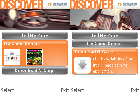 Nos, egy frankó kis animációt követően két demo játékot találhatunk itt meg. Az egyik az Asphalt 3 (hmm-hmm, ez nem egy túlságosan új fejlesztés), a másik pedig a FIFA 07, amely így 2008-hoz közeledve szintén nem túl aktuális. Viszont mindkettő rendben van (Gameloft termékek), és persze hogy a szoftverek felkínálják letöltésre a teljes verziót, ebben nincs semmi meglepő.