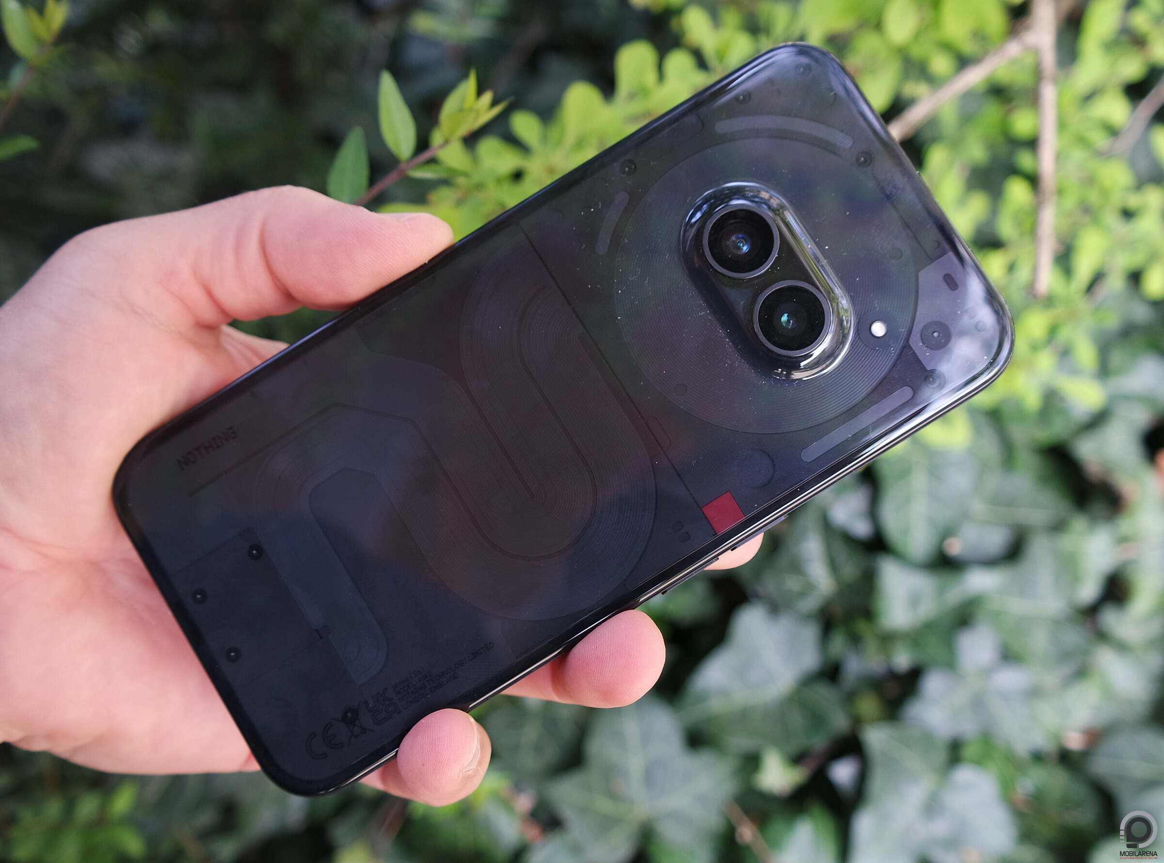 A hangerőszabályozó gombok balra, a kijelzőt feloldó gomb jobbra került, a SIM-tálca alulról húzható ki, két nanoSIM ülhet rajta, viszont az eSIM hozzáadása nem opció. Alul van még Type-C port és hangszóró, ennek felül nem látni a párját, de a készülék sztereóban szólal meg (kimondottan jól) multimédiás tartalmak esetén, mert a felső beszédhangszóró besegít. Akárcsak eddig, most is két színben létezik a cucc: fehérben és feketében, előbbi esetben talán látványosabb a hátlap kamutranszparens kialakítása, hiszen most is áttetsző, de ettől még továbbra sem látunk bele a lelkébe. Mondjuk nehéz is lenne, aki már szedett szét telefont az pontosan tudja, hogy hátulról nézve zömmel az akkumulátor dominál, felesleges mindenféle nyomtatott áramköröket ideképzelni.