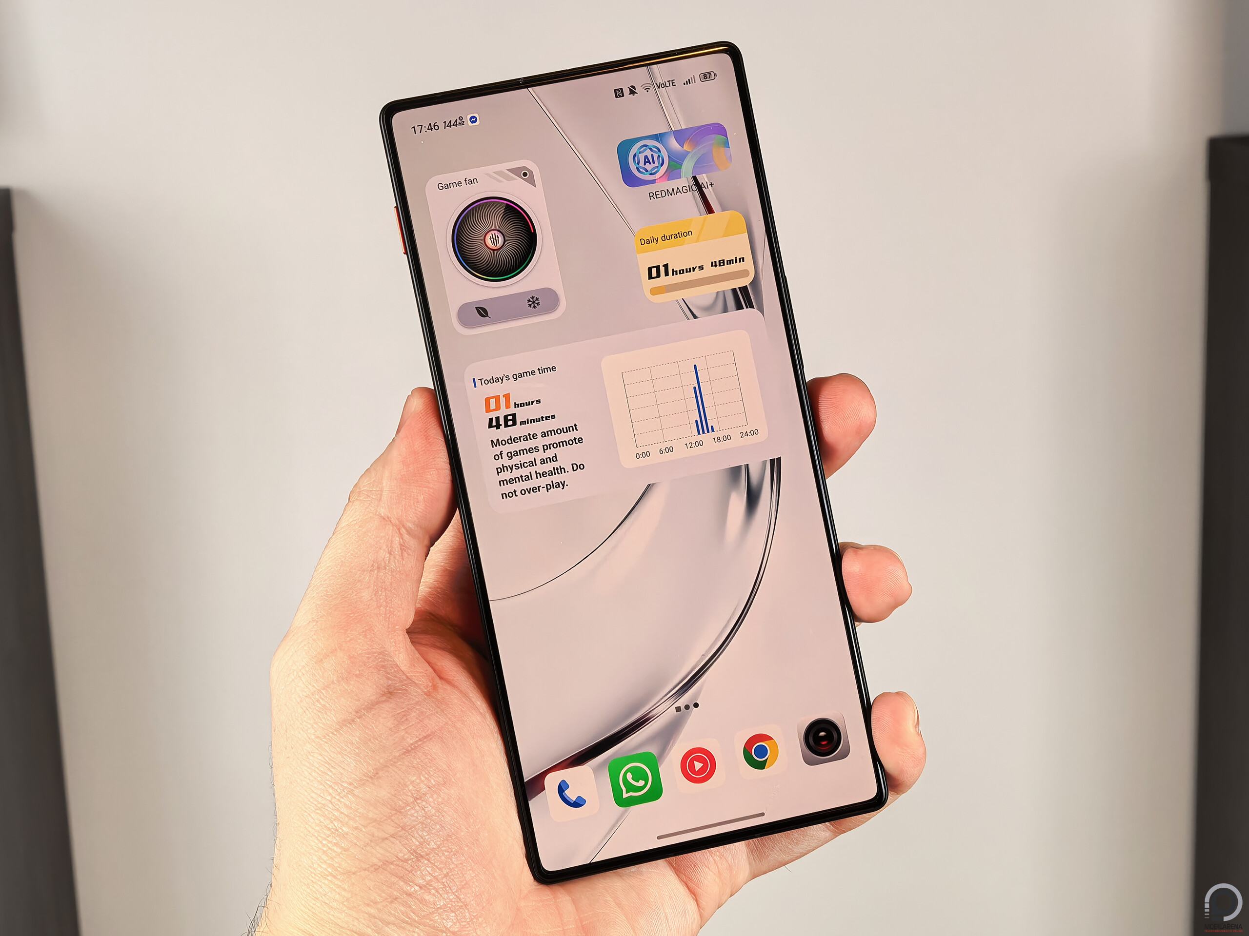 Persze az Air jelző itt is a légies, vékony, és könnyű készülékházra utal, a Red Magic telefonok között ez mínusz 1 millimétert és 23 grammot jelent a 11 Air javára a 11 Pro telefonhoz viszonyítva. A kasztnit ért faragás viszont ebben a modellben nem jár funkciócsonkítással, adott például az aktív hűtéshez a ventilátor, és a kijelző is echte ugyanaz, mint amit a 11 Pro is kínál.