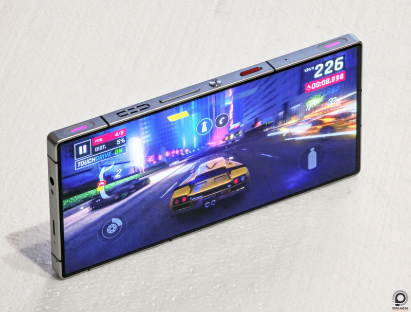 A 6,8”-es és 120 Hz-es BOE AMOLED panel ugyancsak nagy méretével és tíz ujjnak jutó rengeteg helyével teszi kényelmesebbé a kikapcsolódást. 1116 x 2480 pixelen nem szállt el a felbontás, hiszen a képkockasebesség fontosabb a képpontsűrűségnél, az érintési érzékelés többujjas használattal 960 Hz-en pedig kiemelkedő. A fémházas dizájn két lapos Gorilla Glass üveggel úgy tökéletes, ahogy van: masszív, erős a szerkezet a felül végig futó légcsatorna ellenére, jól tapad a hátlap a tenyérhez és sehol semmi aszimmetria vagy felesleges kanyarulat.