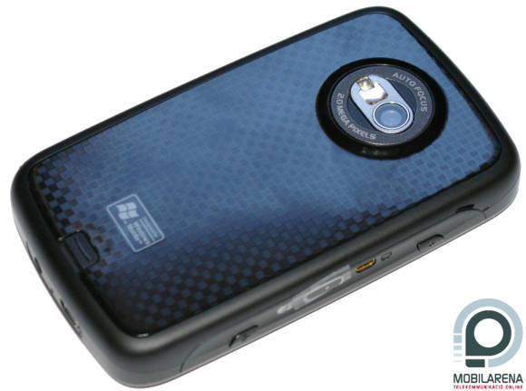 There is a square pattern on the back, I think it looks cool, but some said that it doesn’t match with other parts of the phone. On top we can see the 2 megapixel autofocus camera, on the bottom, just over the small button used for taking off the back, there is a Windows Mobile logo.