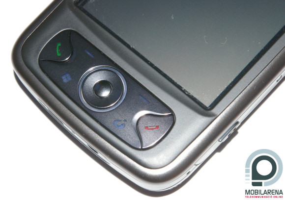There can be no complaints about picture quality, it is astonishing. Above the TFT display there is the VGA resolution camera used for video calls and the phone’s speaker surrounded by status LEDs. On the left of these we can see an “engraved” O2 logo. The navigation controls are on the bottom; the d-pad in the middle is really small (and thus its use is a bit problematic), the function buttons around it are somewhat larger. There is a backlight for these, they glow in a color equivalent of the call accept/reject buttons’ on the sides, while other buttons are blue.
