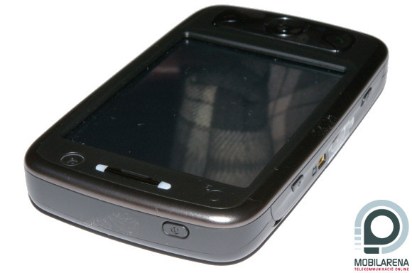 Let’s start from the bottom, for a change: there is a shortcut button (Wireless Manager), above that an infrared port, TV output, another shortcut button (voice recorder is the default setting for this), and another speaker, so we have a stereo sound – theoretically.