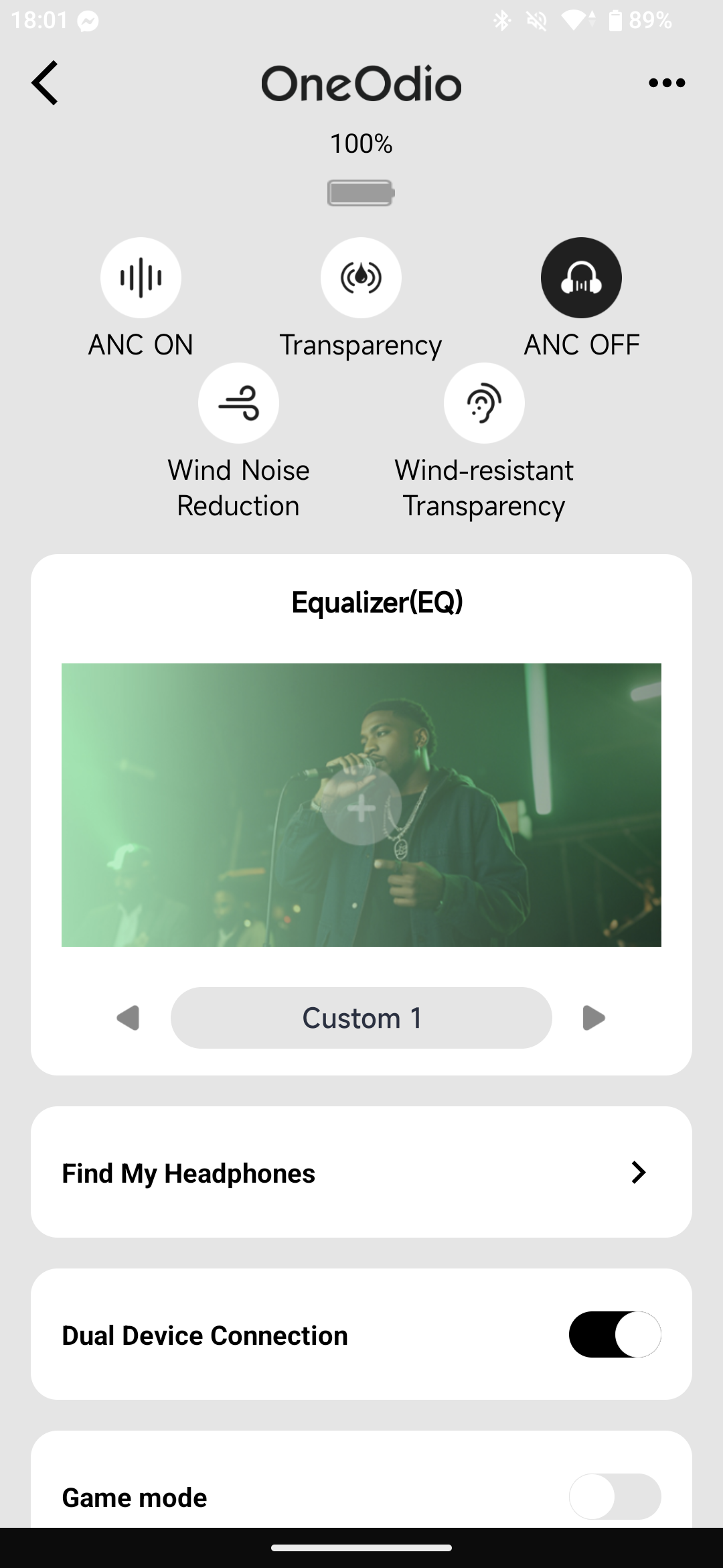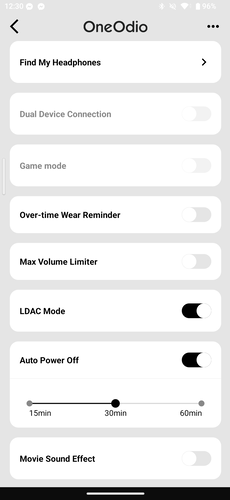 Ingyenesen letölthető a OneOdio alkalmazás Androidra és iOS-re egyaránt, különbség pedig mindössze annyi a két rendszerre írt verzió között, hogy iOS-en nincs az LDAC kódolás használatát bekapcsoló gomb. Így iPhone-nal vezeték nélkül csak AAC-n, vagy a mellékelt USB-kábellel kommunikál a fejes. Android esetén opció bekapcsolni az LDAC-t, viszont ez letiltja a játék módot és a két eszközös multipontot (Dual Device Connection). A multipont egyébként valós időben jól működött nálam iOS-t és Androidot használva, de a OneOdio alkalmazás valamiért csak az egyik eszközön volt hajlandó felismerni a fejhallgatót. Emellett számomra hiányzott az alkalmazásból a párosított eszközök listájának megtekintése, egyszerűen nincs ilyen opció.