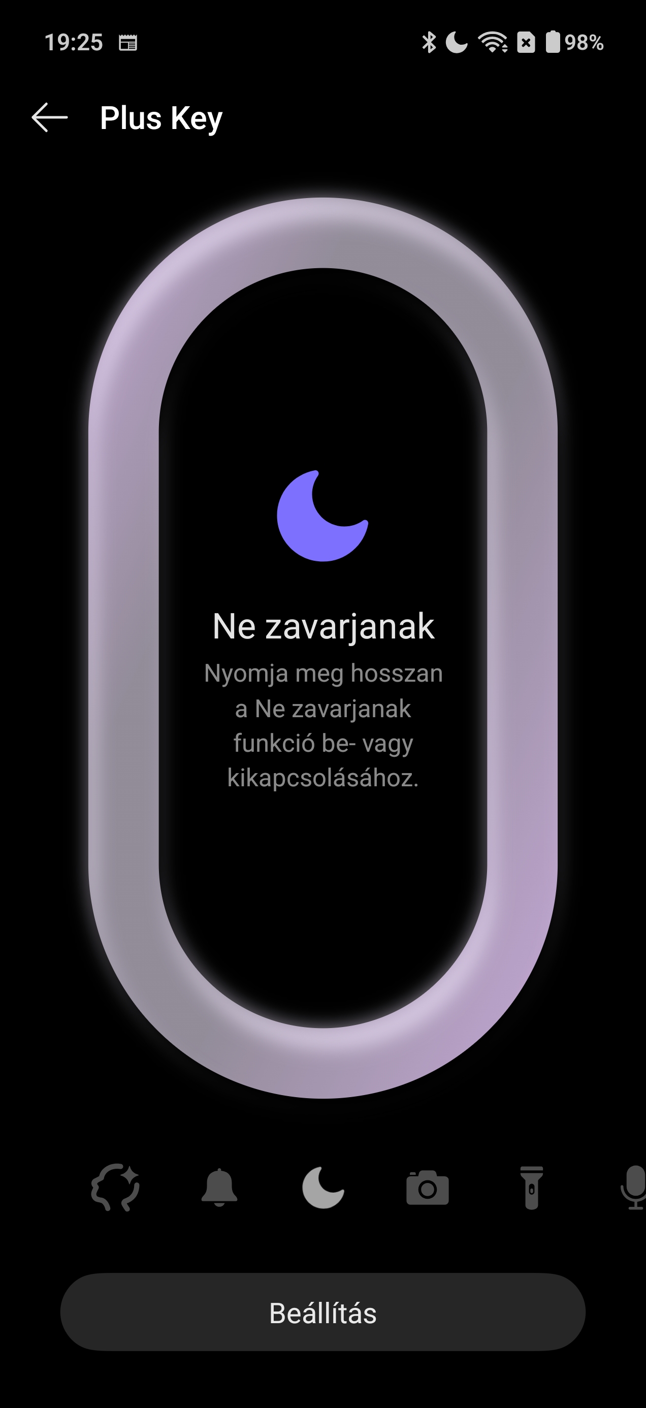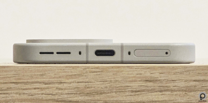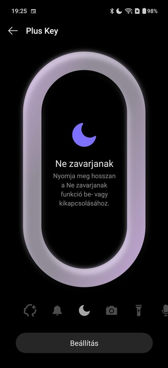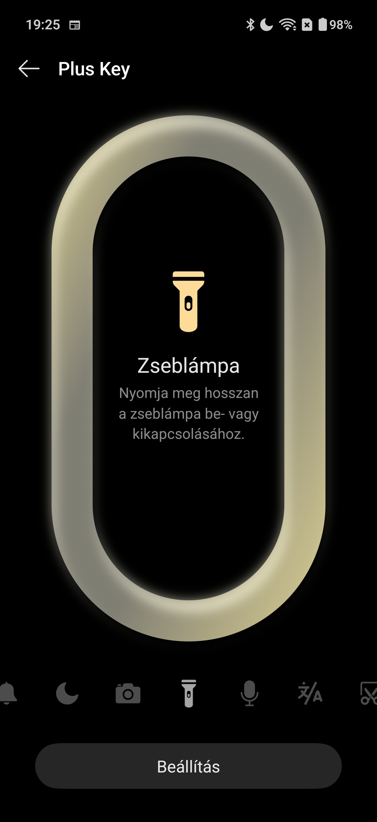 Apple-copy kameragomb nincs, a régi némítókapcsoló helyén viszont iPhone stílusban programozható Plus Key gomb van, és az Elmetér, a némítás, a ne zavarj mód, a kameraindítás, a zseblámpa, a hangjegyzet, a fordító és a képernyőkép társítható hozzá. Kár, hogy a billentyű túl magasra került. A fémkereten körbeszaladva feltűnhet, hogy kimaradt a jack port, van viszont alul USB-C 3.2-es Type-C kimenet, két nanoSIM foglalat + eSIM és az alsó-felső élen vájat a sztereó hangnak, amit a beszédhangszóró is megsegít.