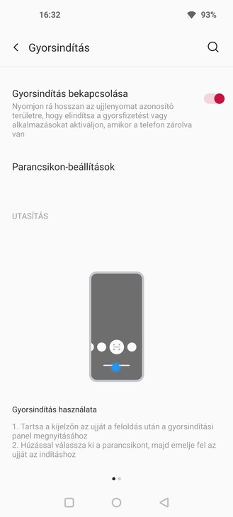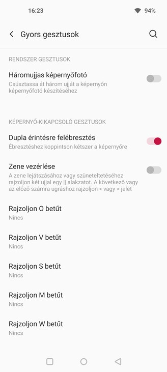 A legnagyobb újdonság, mármint az Oxygen OS-ben, nyilvánvalóan a mindig aktív kijelző, ami rommá paraméterezhető, a megjelenítés ütemezésétől kezdve, a különböző órastílusokon, képeken és tartalmakon át, a kijelzőbe integrált ujjlenyomat-olvasó animációjának variálásáig. A felületet hosszan nyomva egyébként nem csak a zárolást tudjuk feloldani, de egy rakás funkció gyorsindítóját is rögtön elérjük. A megjelenő parancsikonok és a sorrend is tetszreszabható, választani pedig a vízszintes lista csúsztatásával tudunk.