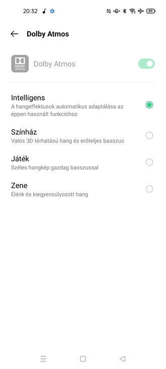 A zenei eszköztár is felemás képet mutat, mert van 3,5 mm-es jack csatlakozó, de nincs FM-rádió és nincs sztereó hangzás kihangosított módban, noha az alsó hangszóró egész korrektül szólal meg. Viszont kapunk dedikált lejátszót, hogy ne kelljen a YT Music barátságtalan felületére kényszerülnünk, ezért jár a pont. A hangzásjavításról Dolby Atmos gondoskodik, de egyéni hangzásképet nem tudunk beállítani, csak az előre definiált listából szemezgethetünk.