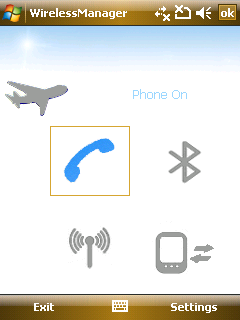 Wireless Manager has a unique design and it looks quite cool. This is where we can turn on the 802.11b/g-compatible WiFi, the A2DP-enabled 2.0 Bluetooth and flight mode. We can use EDGE or GPRS for data transfer if there would be no WiFi network in range.
