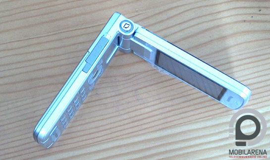 A telefon bal oldalán található a töltőcsatlakozó, amit a készülékhez rögzített műanyag sapka véd a koszolódástól. A jobb oldalon található a kamera gyorsbillentyűje, az infra port, és a hangerőszabályzó gombjai. Ez utóbbiak kerültek alulra, így telefonálás közben a kisujjunkkal tudjuk a hangerőt szabályozni, ami eleinte kicsit zavaró, azonban hozzá lehet szokni néhány nap alatt. Lessük meg közelebbről azt a nyitómechanikát, amire mindenki ráizgul. Nos, ha rá akarunk kukkantani a telefon kijelzőjére (ami ugye belül van), akkor két lehetőségünk adódik. Az egyik a hagyományos módszer a „fogom, azt kinyitom” elven működik. Itt kétállású a telefon, az egyik 90 fokos, a másik 170 fok körüli állapot. (Ezekről Bog biztosan idevarázsol két képet) (Biztosan – Bog) Azonban ezt csak két kézzel lehet megvalósítani, mivel annyira jól összepasszol a készülék, és annyira vékony. Itt jöttek képbe az ötletes Panasonic mérnökök, és beletették a készülékbe az X400-ból megismert mechanikát. Így egyetlen gombnyomással kicsaphatjuk a telefon tetejét. Ez pedig valahogy annyira laza érzés, hogy mindenki azonnal úgy érzi, hogy ő Neo a Mátrixból.
