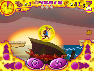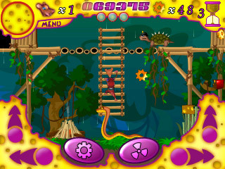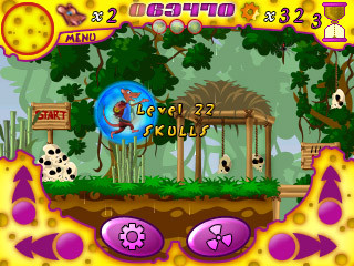 Az irányítással viszont sajnos akadtak problémák. Egy ilyen játékot elvileg jól lehet irányítani d-paddal, az én PDA-mmal viszont gondjai voltak, néha nem reagált a nyomkodásra, ha pedig igen, akkor is késve - maradt tehát az érintőkijelző. A játék jellegéből adódóan létfontosságú, hogy egyszerre tudjuk nyomni az oldalrát és az ugrást. Ezt a fejlesztőknek egész jól sikerült megoldaniuk: ahogy a képeken is látszik, a bal és jobb alsó sarokban található virtuális gombokkal lehet az említett irányokba futni. Mindkettő fölött van egy-egy ugrás, tehát ha futás közben ugrani akarunk, csak fel kell tolnunk ujjunkat, és wow, működik a futás+ugrás kombó. Vagy nem, ugyanis sokszor nem ugrott a patkány, de az is előfordult, hogy ugrott, csak nem előre felé. A két panel között is vannak gombok, a baloldali a "használ" funkciót látja el, a jobboldali pedig a pajzsot kapcsolja be.