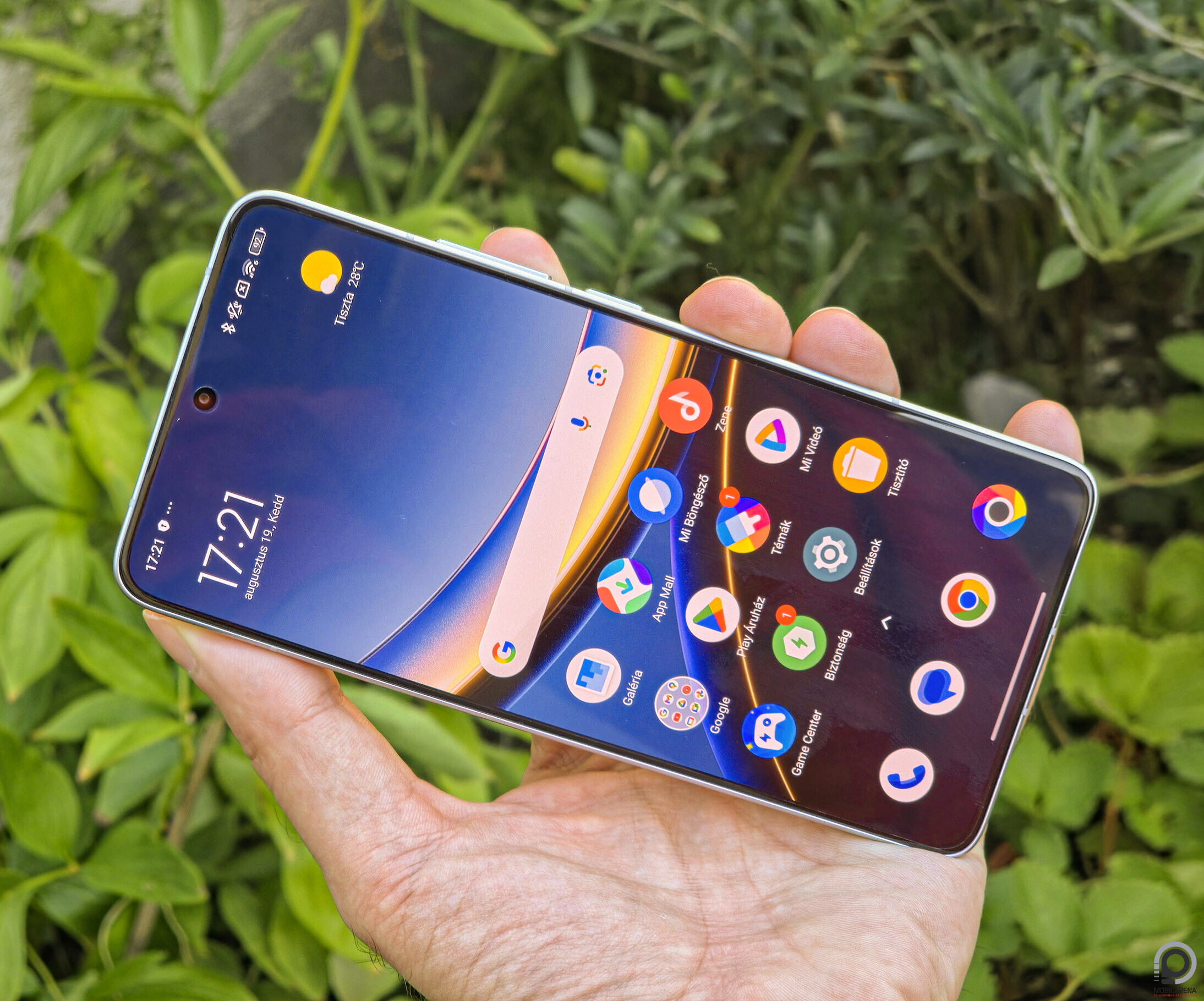Jó helyen van a hangerőszabályzó és a bekapcsoló jobbra, az előlapi beszédhangszóróval az alsó rács pedig esélyes sztereó hangot alkot. Kár, hogy a jack kimenet, az USB 3.2-es átvitel, a microSD bővítés és az eSIM kimaradt. Van viszont két nanoSIM foglalat, a hátlapon infra, 256 GB-os alaptároló, öt év szoftvertámogatás és tok, leírás, USB-A - USB-C kábel, valamint SIM tű a dobozban. Sajnos nálunk az adapter kimaradt, a fólia viszont előre rákerült az előlapra. A legfontosabb úgyis a 20 megapixeles szelfilyuk alatt és az ultrahangos ujjlenyomat-olvasó előtt operáló, rekordfényes, 12 bites, 6,67”-es, 1440 x 3200 pixeles, 120 Hz-es Dolby Vision / HDR10+ panel.
