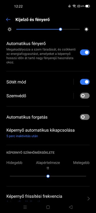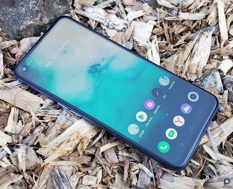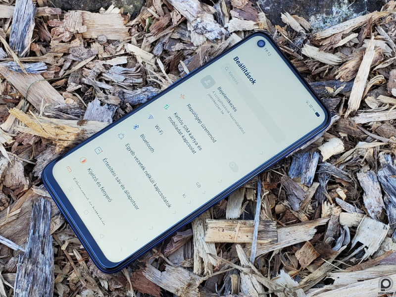 Kezdjük is a kijelzővel. A Realme 6,5 hüvelykes, 1080 x 2400 pixel felbontású IPS panelje 90 Hz képfrissítéssel (opcionálisan 60 Hz vagy a tartalomnak megfelelően optimalizálva) és közel tökéletesen kalibrált színhőmérséklettel valóban meggyőző. A betekintési szögek tágak, a felbontás optimális, a védőüveg sík; van kékfény szűrő, natív sötét mód, a kávák keskenyek és a bal sarokba pakolt 16 megapixeles szelfikamera sem különösebben hangsúlyos. A magam részéről legalábbis még mindig ezt a kialakítást preferálom, ha már sehogy sem fér a peremre.