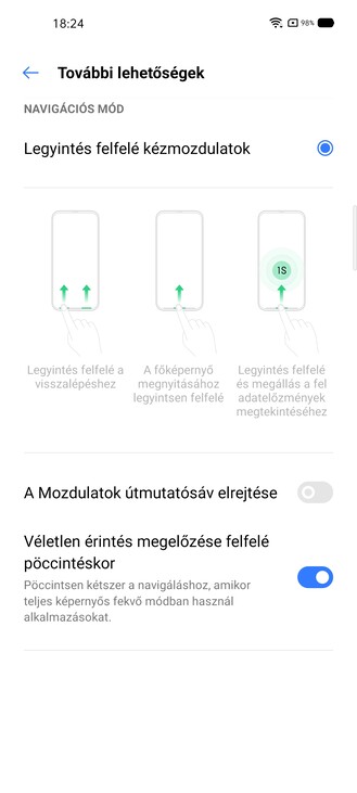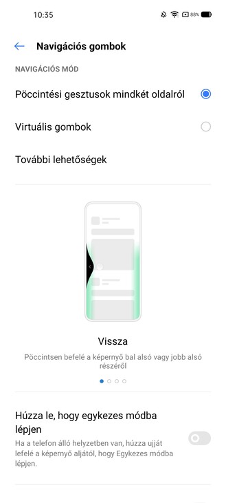 A rendszervezérlés történhet átrendezhető navigációs gombokkal, a gombokat helyettesítő gesztusokkal és teljes gesztusvezérléssel. Elérhető a navigációs vagy Segítő gömb is tetszőleges funkciókkal, illetve az intelligens oldalsáv, ahová appokat és funkciókat pakolhatunk tetszés szerint. A hívásokat fogadhatjuk a készülék telefonáló pozícióba való emelésével, van dupla koppos ébresztés és lezárás, felébresztés emeléssel (ez nagyon jól működik a bámulatosan gyors arcazonosítással kombinálva) és többféle módon is készíthetünk normál és hosszú képernyőfelvételt.