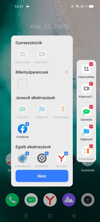 A felhasználói felület eddig a legkomplexebb Realme UI, amit láttunk, rengeteg apró kényelmi megoldással és módosítatlan Android 10 alapokkal. A néhány átrajzolt ikonon és gyorskapcsolópanelen kívül minden a megszokott rendben történik, viszont az extra funkciókat is sikerült maradéktalanul és helyesen magyarra fordítani. Két darab teljesen felesleges holmi került az alkalmazások közé. Az orosz nyelvű Yandex böngésző és a Yandex hírösszefoglaló. De utóbbi legalább latin betűket használ és magyar nyelvű oldalakról válogat.