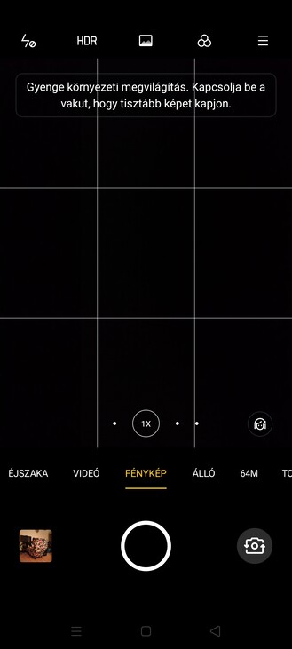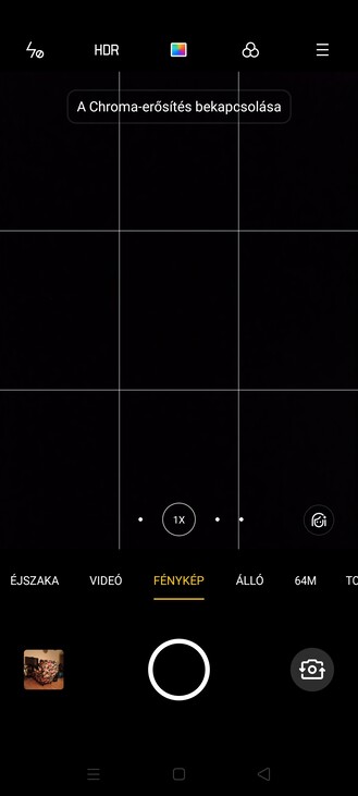 A kamerarendszer a kategóriában megszokott konstrukció; 64 megapixeles főkamera (1/1,7 szenzorméret, f/1,8 rekesz, PD autofókusz), 8 megapixeles ultraszéles, 2 megapixeles monokróm szenzor a mélységadatoknak és egy 2 megapixeles, szokás szerint felesleges makró kamera. Még a kétszeres digitális zoom is részletgazdagabb közeliket eredményez (ami egyébként a 64 megapixeles képekből vág), mint a nehezen használható, fix fókuszos dedikált makró kamera.