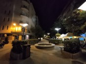 A középkategóriában ritka a zoomkamera vagy a használható szenzorzoom, az utóbbi viszont ritka jól teszi a dolgát, csak egy kicsivel gyengébb részletességet hozva, mint ha igazi 2x-es optika készítette volna, egy olcsó segédlencsénél jobb dinamikával. Este picit rám ijesztett a képminőség: nem a korrekt fehéregyensúly vagy expozíció okán, és még a részletesség is megvan a megvilágított helyeken. Egyszerűen többet mos a zajszűrés a kelleténél – aztán belép a képbe a kézből megtartható éjjeli mód (3. sor), és egy csettintésre feljavul a dinamika, illetve a textúraminőség, lásd a növényzet vagy a burkolókövek részletességét. Magyarán odateszi magát a legfontosabb kamera éjjel-nappal, és talán nem a GT Master árszintjén ültetném le a gyártókat, hogy átbeszéljük: ha a Poco X3 NFC-be tavaly belefért egy jófajta ultraszéles egység, miért alap 200 rugóért is 2021-ben a 8 megapixeles?