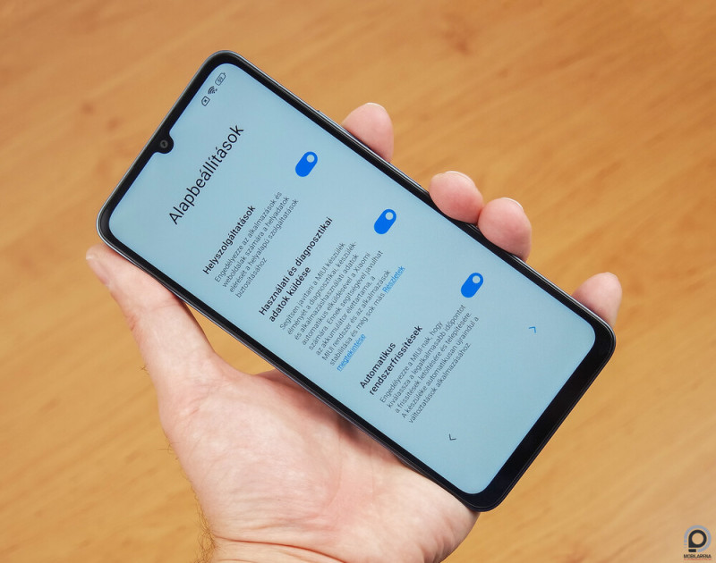A kékesre kalibrált színek ugyan nem kirobbanóak, viszont kellemes a kontrasztarány és némi fényerővesztés mellett rendben van a betekintési szög is. Az 594 nites napfény alatti fényszűrűség pedig kifejezetten helytálló, hogy odakint is kényelmes legyen olvasni a Mobilarenát vagy fényképet komponálni, de azért messze egy jobbfajta AMOLED 1000-2000 nitje. Feleslegesen borzolja a Xiaomi a kedélyeket a virtuális közelségérzékelővel – tényleg nem fért oda az igazi a beszédhangszóró, a 8 megapixeles szelficsepp és a fénymérő mellé? Nem segíti az egykezes használatot az sem, hogy az alsó káva vastagabb a többinél, jobbra nekem viszont kézre esett a hangerőszabályzó és a megbízható ujjlenyomat-olvasóval egybeköltözött bekapcsoló.
