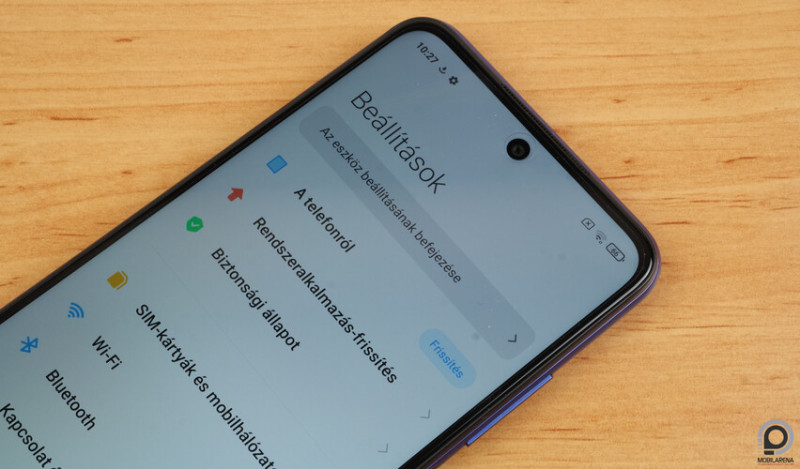1080 x 2400 pixel felbontású az az IPS panel, ami némi káva és egy kameralyuk kivételével uralja az előlap egészét. A 90 Hz-es képfrissítés komoly előny tud lenni, és bár a hardver nem mindig partner abban, hogy ekkora felbontáson ilyen gördülékeny élményt adjon (játékok közül nem sok minden fog 60 fps-sel futni, és kisebb akadozások szinte bárhol előfordulnak), összességében azért ki lehet élvezni a hagyományos 60 Hz-hez képest 50%-os előnyt, főleg a menükben való görgetésnél. A 4-500 nites maximális fényerő és az 1800:1 körüli kontrasztarány tulajdonképpen a kategória elvárható átlagát hozza, ennél eggyel olcsóbb szinten még jóval karcsúbb értékekkel találkozunk, itt viszont már ez szinte elvárás, amit a hasonló árú Realme mobilok is ugyanilyen könnyedén teljesítenek. Jól sikerült a színkalibráció, és a minimális fényerő is 1 nitig lemegy, ami a vaksötét szobában kifejezetten előnyös lesz. Természetesen remek az érintésérzékelés is, és nincsenek bevilágítások sem a ragasztott széleknél, manapság szerencsére már inkább azt kellene kiemelni, ha ilyen hibákkal találkoznánk, nem annak örülni, hogy ezek nincsenek. Nagyobb dilemma lehet, hogy nem érdemes-e inkább az always-on (mindig aktív) kijelző lehetőségét és a Super AMOLED opciót választani valamelyik másik Redmi Note 10-zel, de ez már a vásárlón fog múlni: ha nagyon kell neki az 5G, akkor mindenképpen ezt a panelt kapja ennyiért.