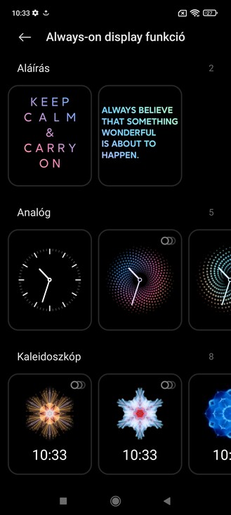 Értesítő LED nincs, de van testreszabható Always on Display, az értesítésekhez pedig kérhetünk képernyőanimációt és a kijelző felvillantását. A 6,43 hüvelykes, 1080 x 2400 pixel felbontású, 8-bites AMOLED panel maradt 60 Hz képfrissítésen, teljesen megegyező, egyébként igen korrekt fényerőtulajdonságokkal és paraméterezési lehetőségekkel (olvasó mód, színhőmérséklet testreszabása, DC dimming villódzásmentesítés, rendszerszintű sötét téma). Működik a felemelésre való ébresztés és a duplakoppos ki-, illetve bekapcsolás, a 13 megapixeles, középre lyukadó szelfikamera pedig alkalmas 2D arcazonosításra.