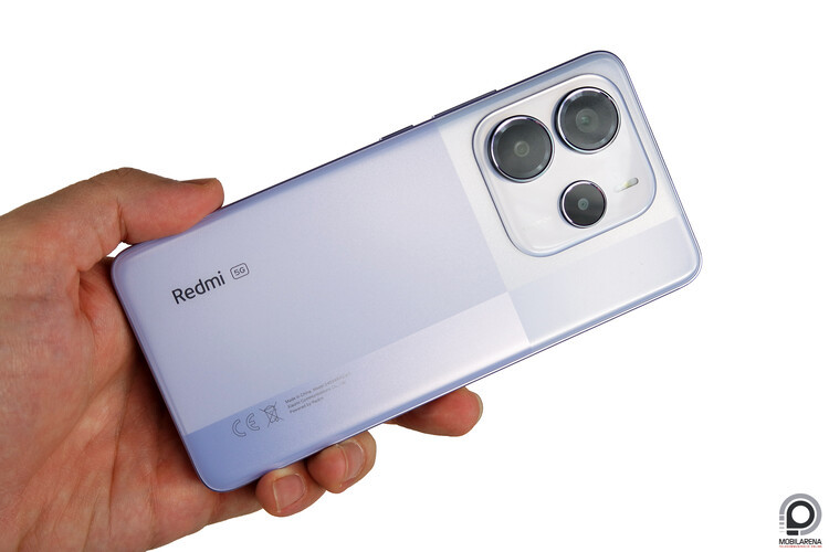 A készülékház 162,4 x 75,7 x 7,99 milliméter és 190 gramm, drasztikus változás nincs a telefon dimenzióit illetően az elmúlt évekhez képest. De elsőként a sima Redmi Note telefonok között ez a mobil már IP64-es védelmet kapott, jobban bírja a port és a vizet is. Egyéb látványosabb változás, hogy a készülékház műanyag keretén a sarkok jobban íveltek, a szintén műanyag hátlap pedig kényelmesebben simul a tenyérbe, a kerettel való találkozásánál kicsit több az ív itt is. Látványosabb a kamerasziget széleinek lekerekítése, illetve a hátlapi dizájn, ami a tesztre kapott lila modell esetén több árnyalatból állt össze. Van még fekete és zöld verzió is egyébként a telefonból.