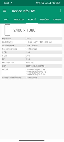 | Felbontás | 1080 x 2400 | 1080 x 2400 | 1080 x 2460 | 1080 x 2400 | 1080 x 2340 |