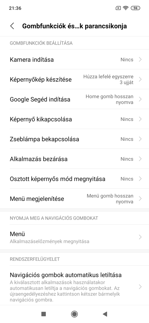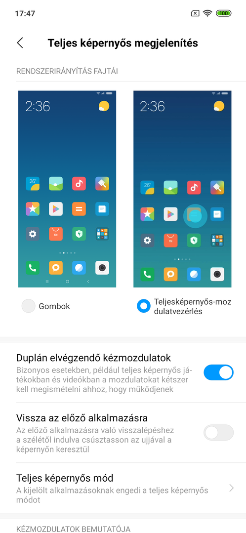 A rendszernavigáció és a megjelenítés részletesen konfigurálható, természetesen elérhető a teljes képernyős gesztusvezérlés, de maradhatunk a variálható sorrendű virtuális navigációs gomboknál is. Rengeteg kényelmi megoldást kapunk: van dupla koppos ébresztés, ébreszthetjük az eszközt rázással, a funkciógombok (kezdőképernyő, alkalmazásmenü, képernyőkép, zárolás) kerülhetnek szabadon lokalizálható lebegő labdára; számos gombkombinációhoz rendelhetünk egyedi funkciót, kezelhetjük az értesítési LED-et és vannak egykezes használatot támogató megoldások, mint a képernyő méretének zsugorítása.