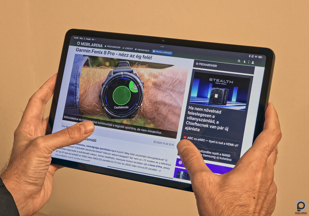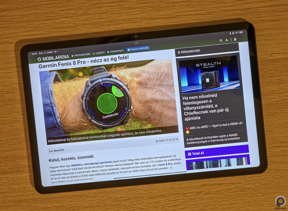 Van végül pár TÜV tanúsítvány kék fény és vibráció szűrésére, illetve a cirkadián ritmushoz való igazodáshoz, a szemem pedig hosszú használat után sem fáradt el, bár az ölem igen: nekem a 9”-es, keskeny kávás Red Magic Astra a tablet ideálom – az oledes rivális persze kétszer annyiba kerül. Az előlapon van még fénymérő és a tartozékokhoz közelségérzékelő, biometrikus védelmet viszont csak a 2D-s arcazonosítás nyújt, ami hatékony, de nem túl biztonságos.